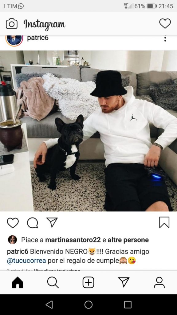 Patric riceve per regalo di compleanno da Correa un cucciolo di cane. Foto su Instagram e ringraziamento al compagno di...