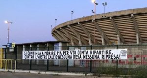 La tifoseria giallorossa del Lecce non approva i tentativi di far ripartire il campionato di Serie A.