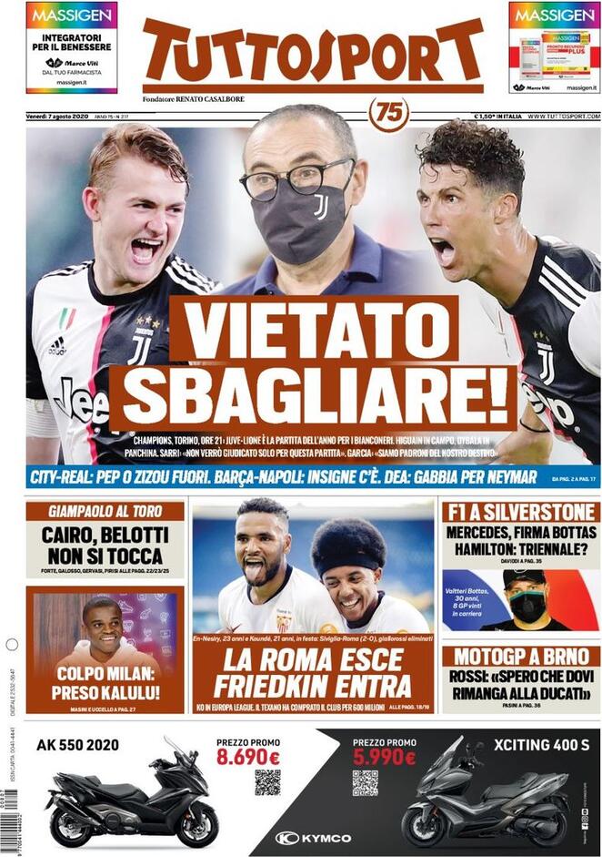 Rassegna stampa, venerdì 7 agosto 2020, inizia con le prime pagine dei quotidiani sportivi in edicola la rassegna stampa di SololaLazio.it.