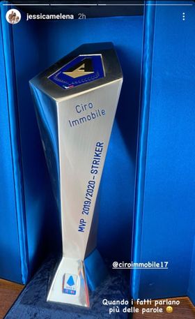 La Lazio oggi gioca contro la Sampdoria in trasferta e lo farà senza il proprio bomber Ciro Immobile, fermato per squalifica dopo la manata a Vidal prima della sosta. Il bomber in settimana è stato vittima di molte critiche sui social dopo un errore con la maglia dell’Italia contro l’Olanda. In tanti hanno preso le sue parti, ma oggi anche la moglie Jessica ha voluto rispondere agli attacchi con un post sui social: una foto del trofeo di miglior attaccante della scorsa stagione con il messaggio “Quando i fatti parlano più delle parole”.