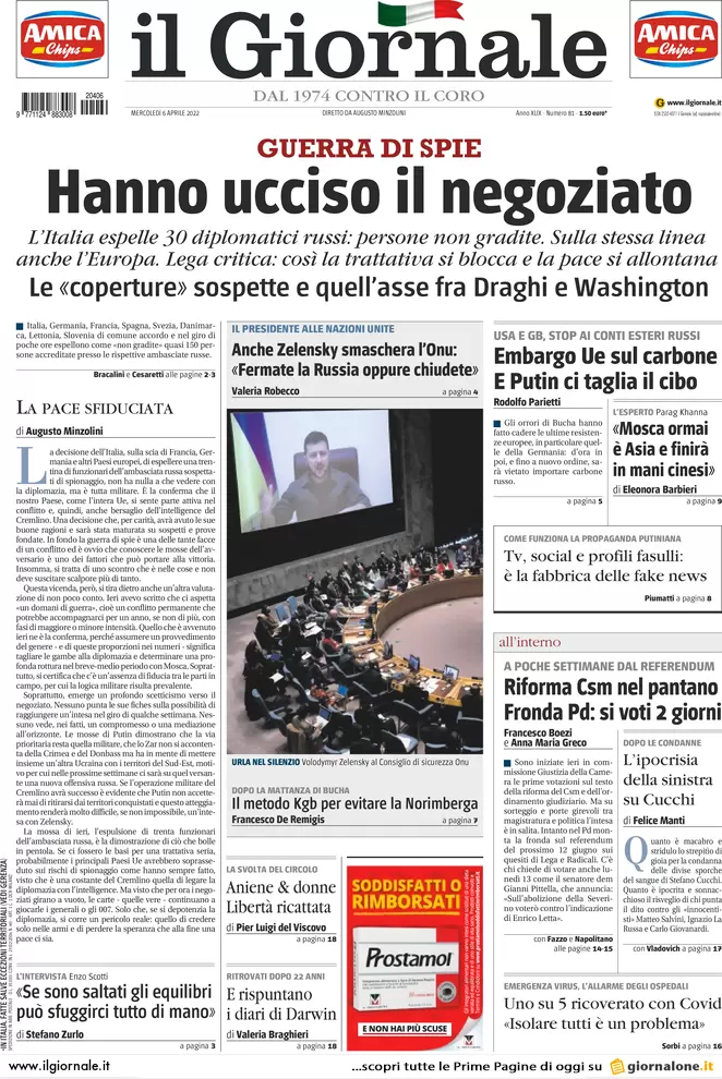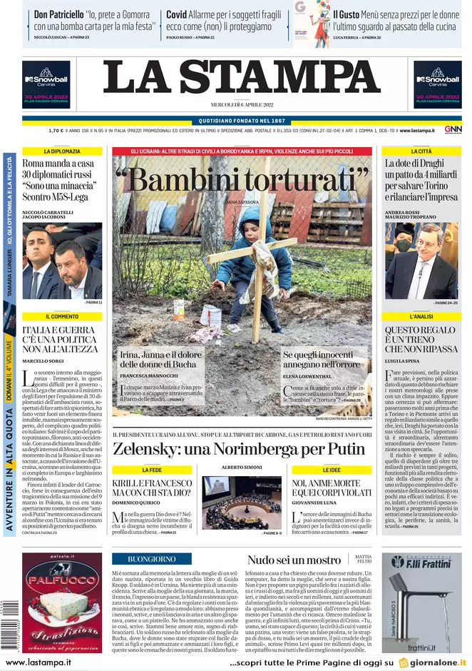 ...Guerra Ucraina-Russia, le prime pagine dei quotidiani generalisti italiani in edicola l’11 maggio 2022