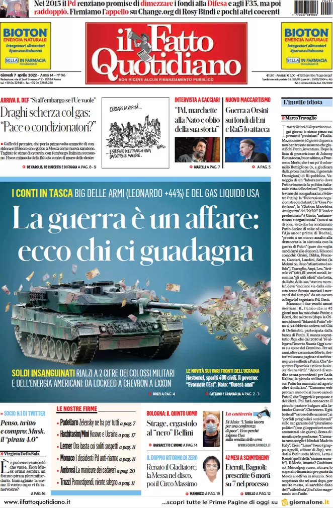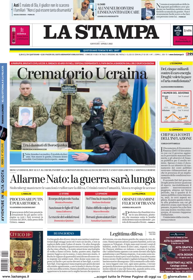 ...Guerra Ucraina-Russia, le prime pagine dei quotidiani generalisti italiani in edicola l’11 maggio 2022