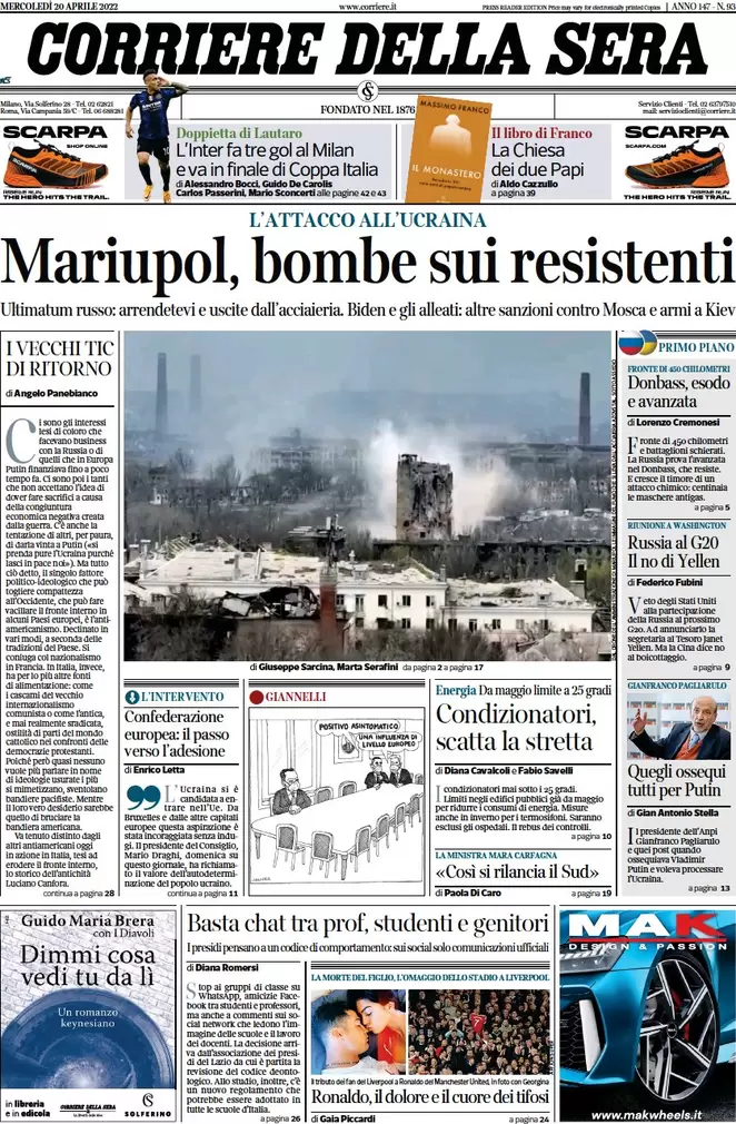 ...Guerra Ucraina-Russia, le prime pagine dei quotidiani generalisti italiani in edicola l’11 maggio 2022