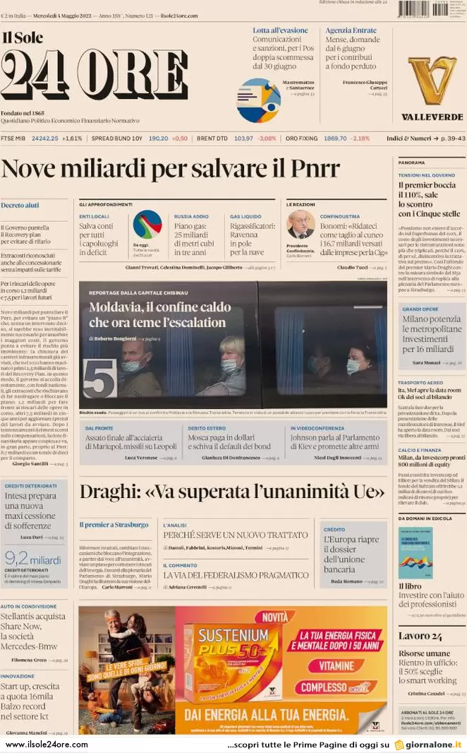 ...Guerra Ucraina-Russia, le prime pagine dei giornali generalisti italiani del 9 maggio 2022