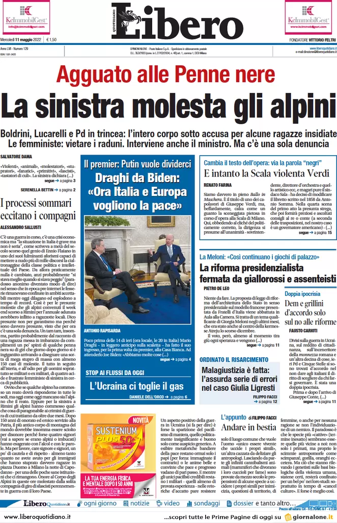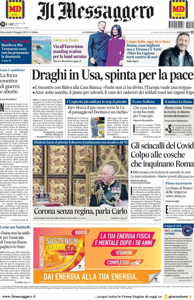 ...Guerra Ucraina-Russia, le prime pagine dei giornali generalisti italiani del 9 maggio 2022