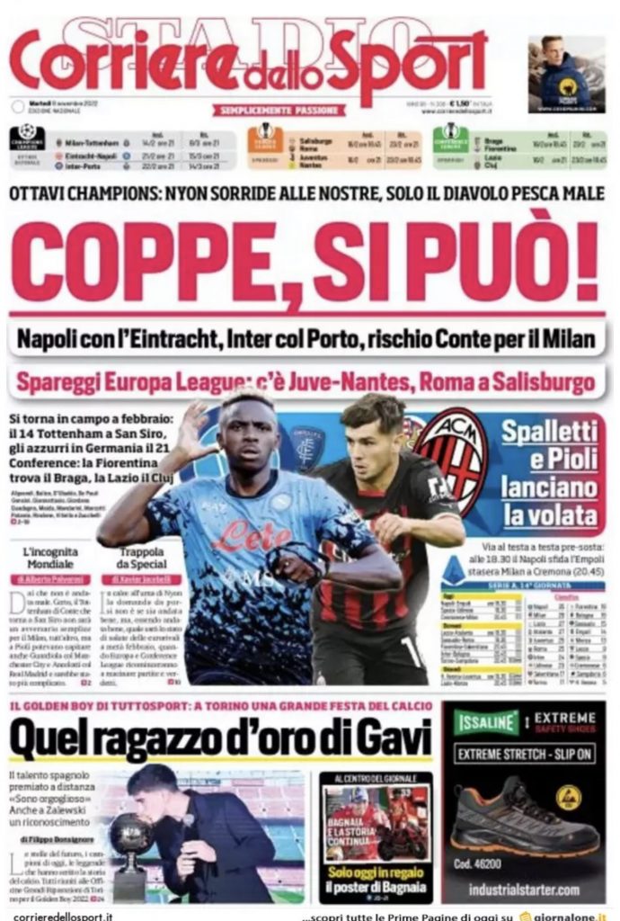 Rassegna stampa, le prime pagine dei quotidiani sportivi italiani in edicola lā8 novembre 2022