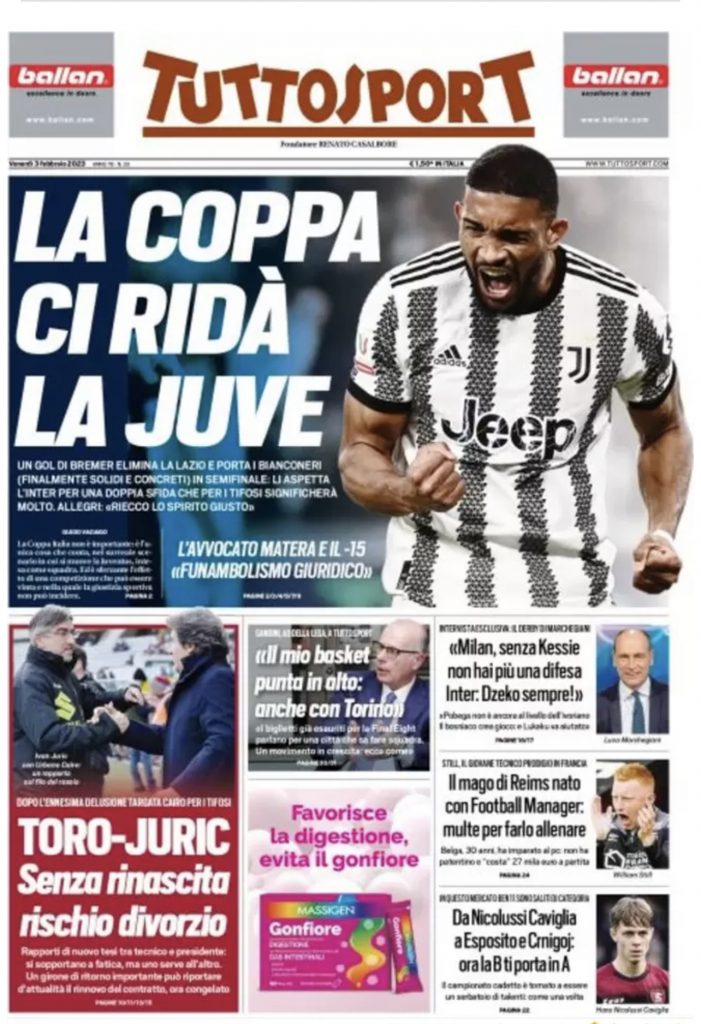 Rassegna stampa, le prime pagine dei quotidiani sportivi italiani in edicola il 3 febbraio 2023