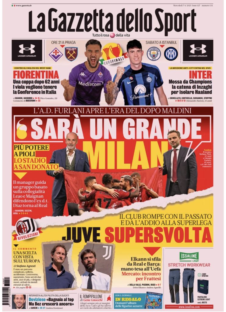Rassegna stampa, le prime pagine dei quotidiani sportivi italiani in edicola il 7 giugno 2023