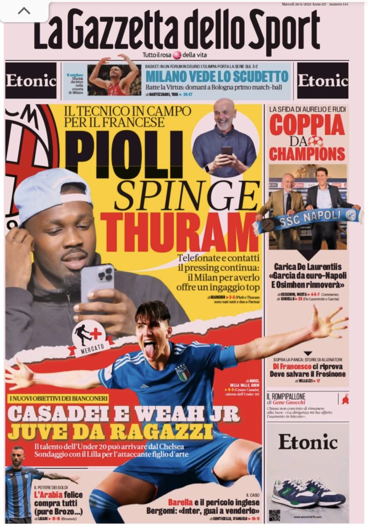 Rassegna stampa, le prime pagine dei quotidiani sportivi italiani in edicola il 20 giugno 2023
