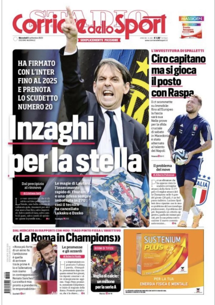 Rassegna stampa, le prime pagine dei quotidiani sportivi italiani in edicola il 6 settembre 2023