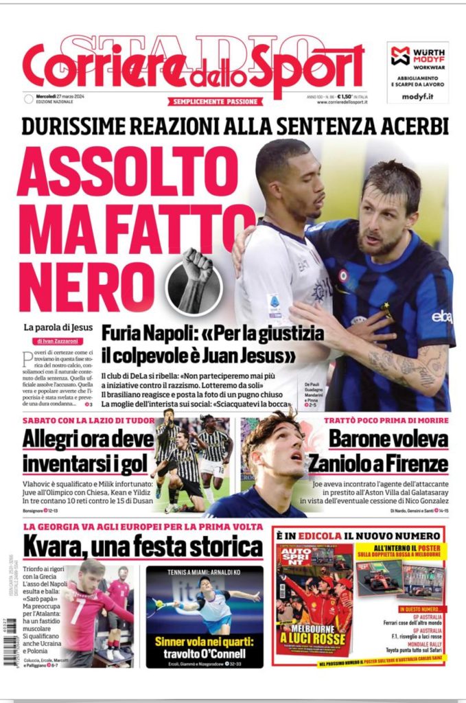 rassegna Stampa, le prime pagine dei quotidiani sportivi italiani in edicola il 27 marzo 2024…...