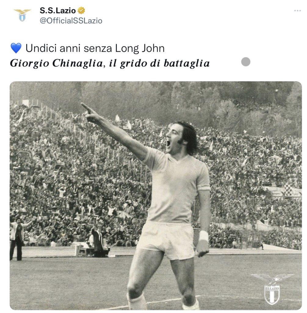 La Lazio ricorda oggi sui social il decimo anniversario della scomparsa di Giorgio Chinaglia. Video celebrativo per Long John. 10...