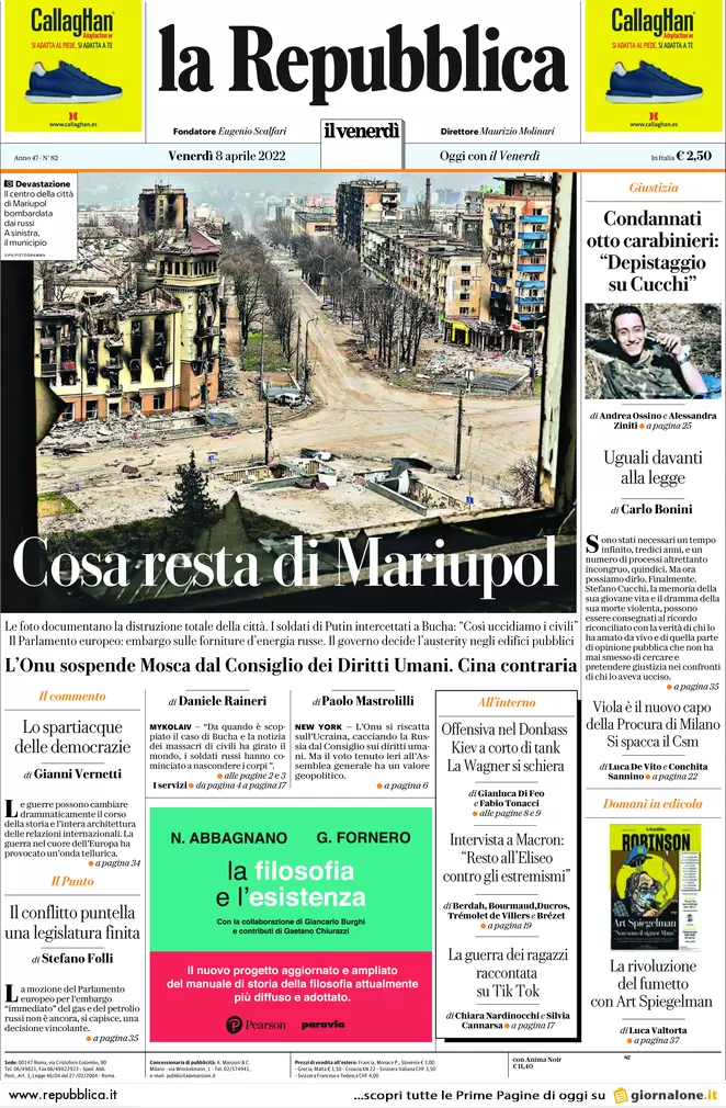 Guerra Ucraina-Russia, le prime pagine dei quotidiani generalisti italiani in edicola lā8 aprile 2022