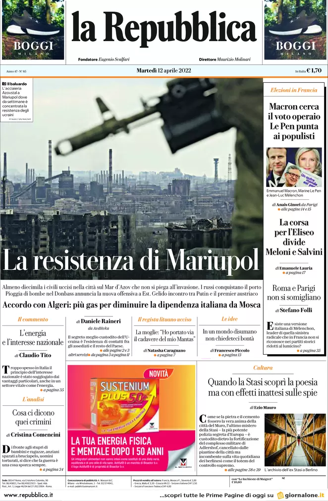 Guerra Ucraina-Russia, le prime pagine dei quotidiani generalisti italiani in edicola il 12 aprile 2022