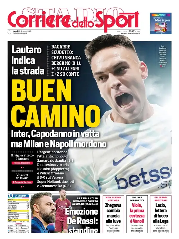 Le prime pagine dei quotidiani sportivi italiani di oggi, lunedƬ 29 dicembre 2025...