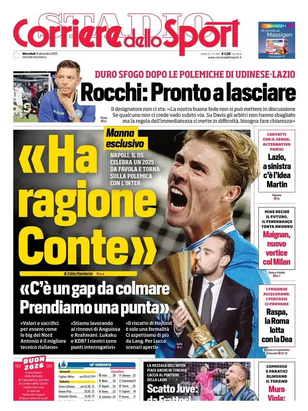 Le prime pagine dei quotidiani sportivi italiani di oggi, mercoledƬ 31 dicembre 2025...