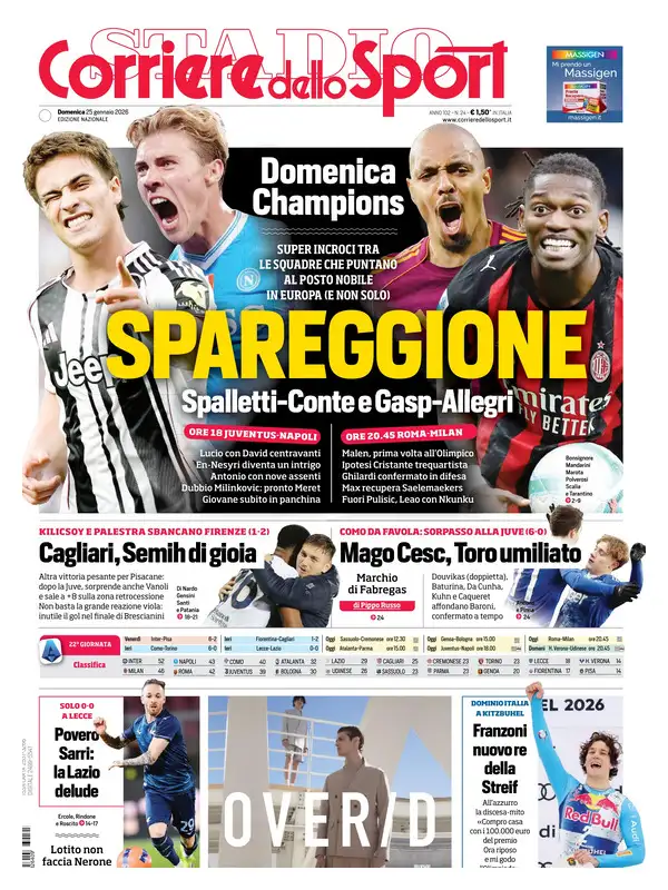 Le prime pagine dei quotidiani sportivi italiani di oggi, domenica 25 gennaio 2026...