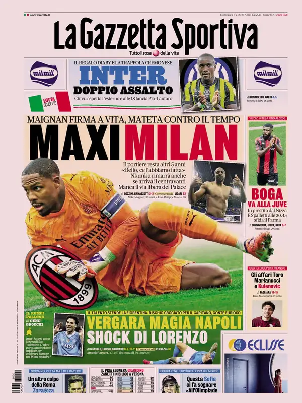 Le prime pagine dei quotidiani sportivi italiani, martedƬ 6 gennaio 2026...