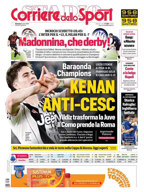 Le prime pagine dei quotidiani sportivi italiani di oggi in edicola, domenica 1 marzo 2026...