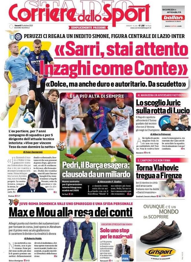 Rassegna stampa, le prime pagine dei quotidiani sportivi italiani in edicola venerdƬ 15 ottobre 2021