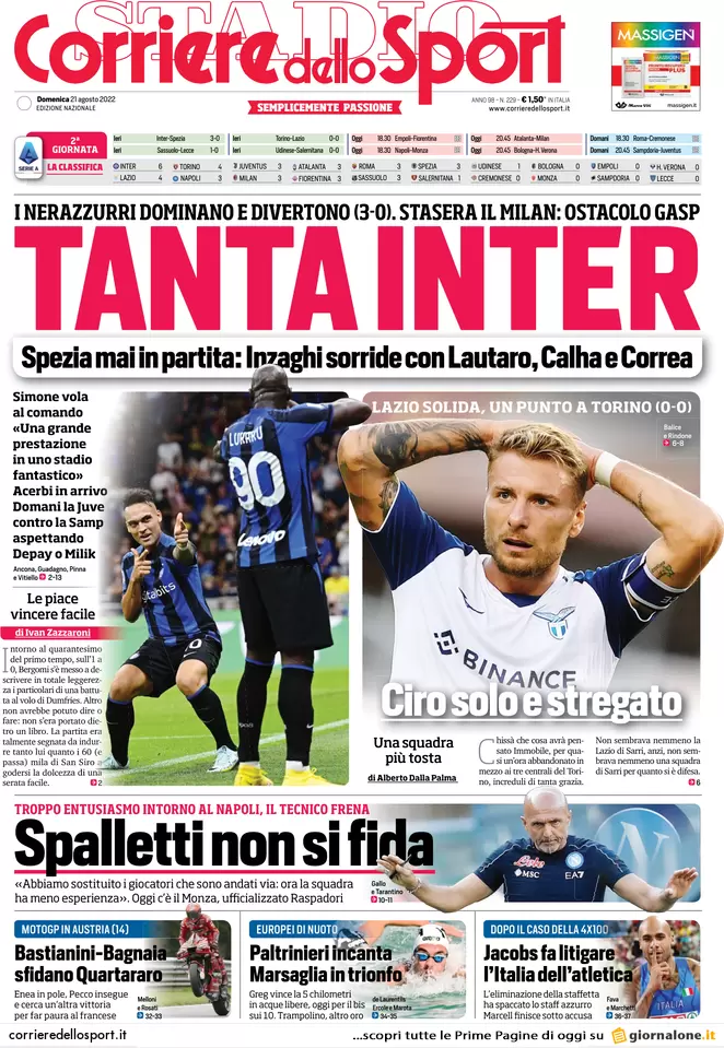Rassegna stampa, le prime pagine sportive italiane del 21 agosto